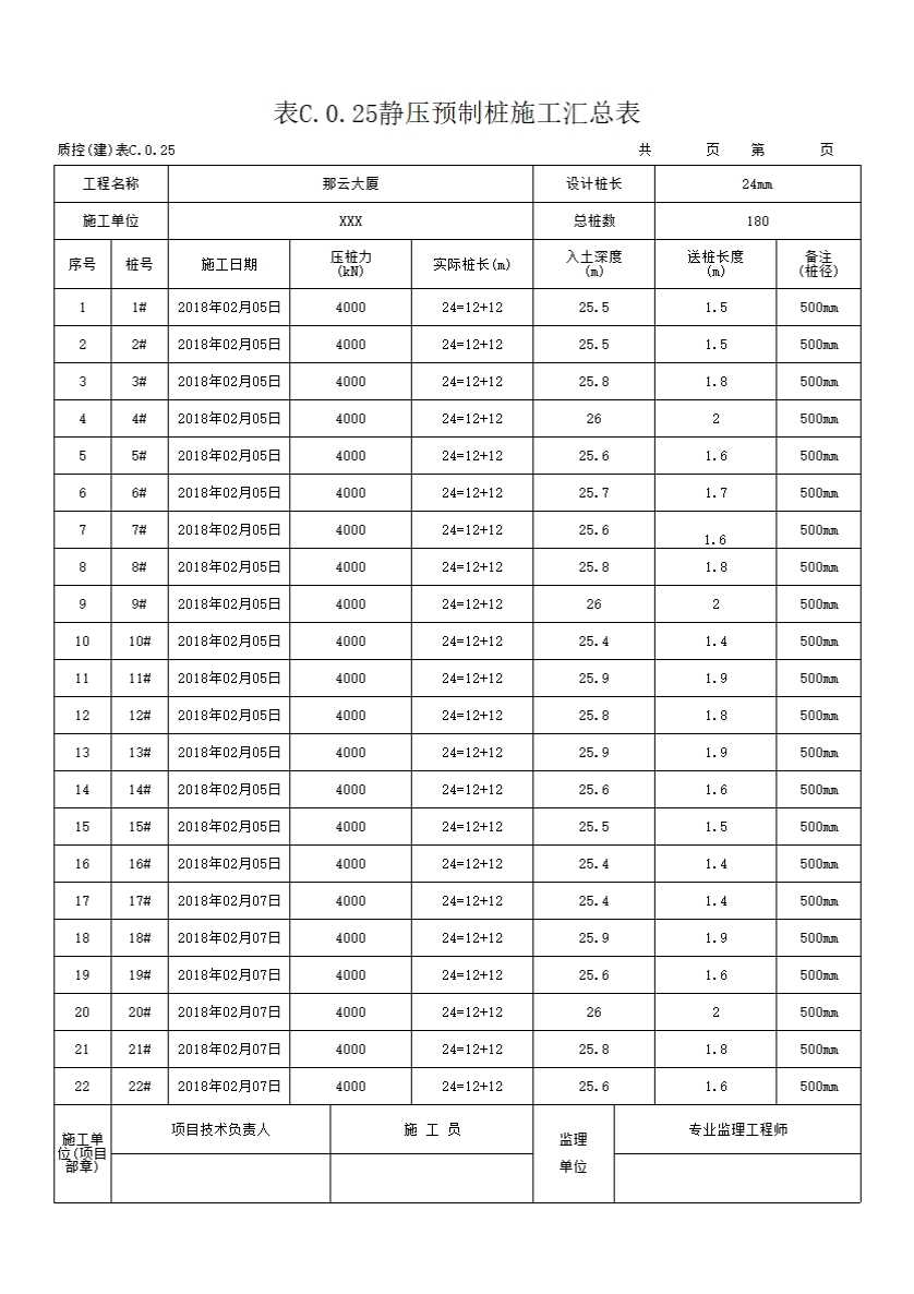 7 静压预制桩施工记录应按本规程附录 C 表 C.0.24、C.0.25 的规定填写,压桩施工过程中,必须认真做好压桩施工各阶段的记录,锚杆静压桩与基础连接前,应对压桩孔进行认真检查;