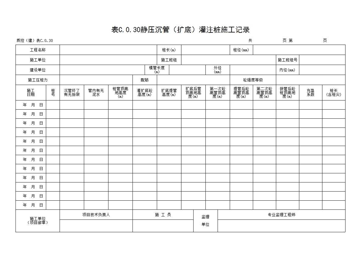 质控(建)表C.0.30静压沉管(扩底)灌注桩施工记录