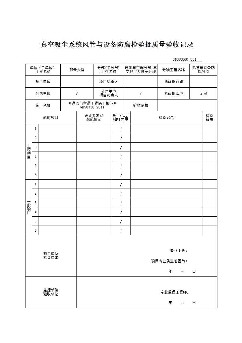 表格名称:06090501_真空吸尘系统风管与设备防腐检验批质量验收记录