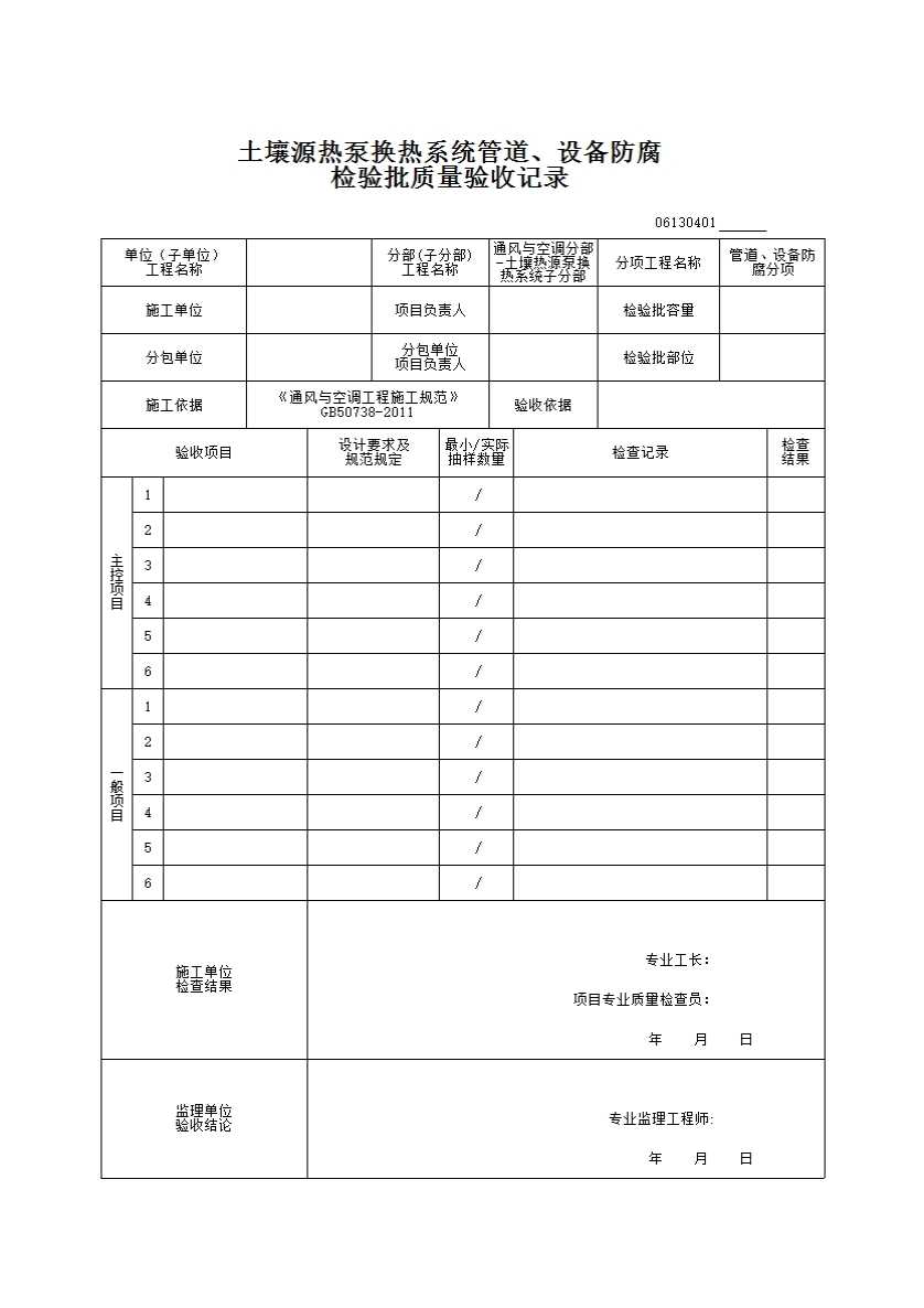 表格名称:06130401_土壤源热泵换热系统管道、设备防腐检验批质量验收记录