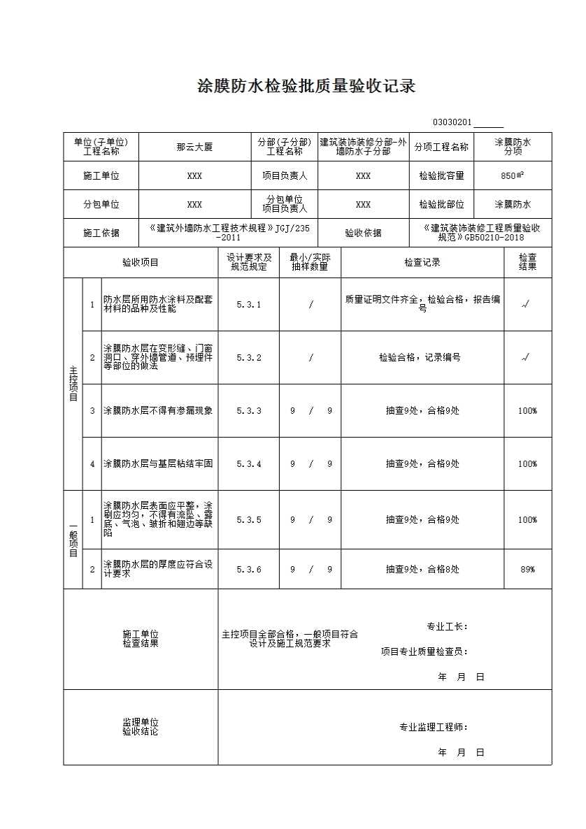 5.3.6 涂膜防水层的厚度应符合设计要求。