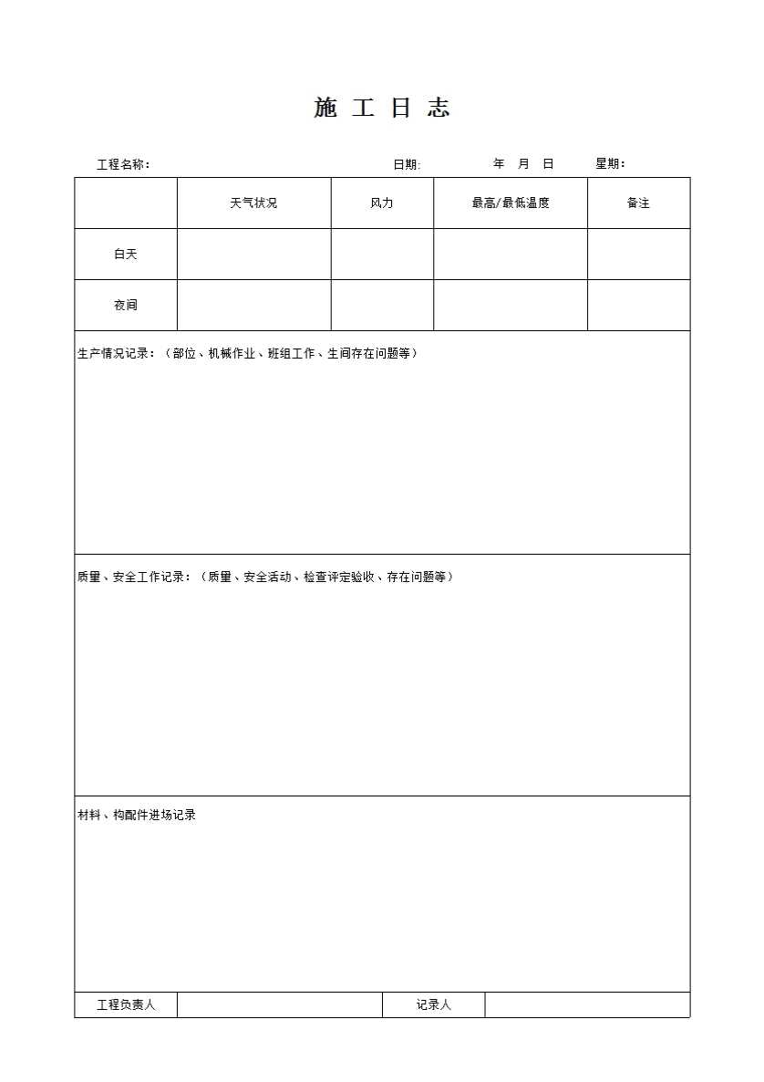 表格名称:施工日志