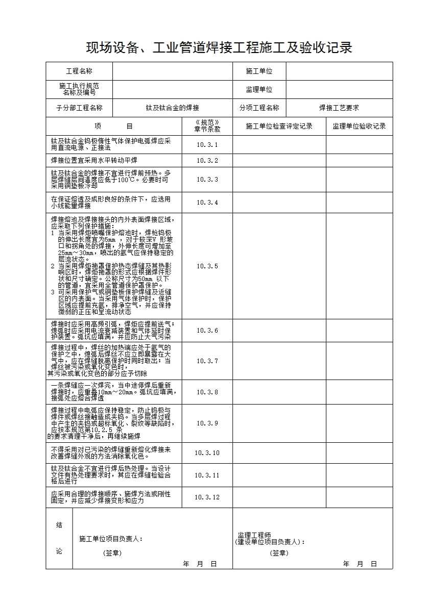 表格名称:钛及钛合金的焊接(焊接工艺要求)