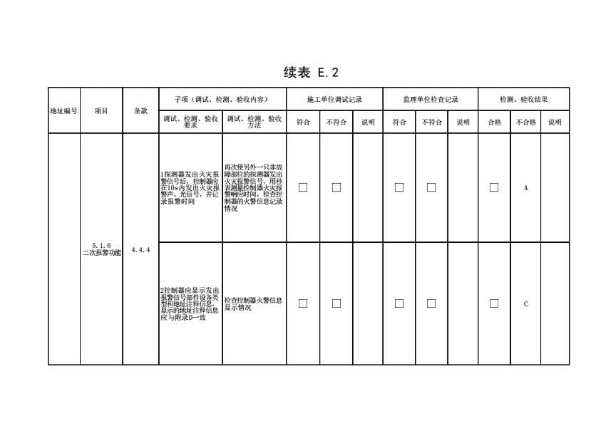 表格名称:表E.2 家用火灾安全系统调试、检测、验收记录(续表14)