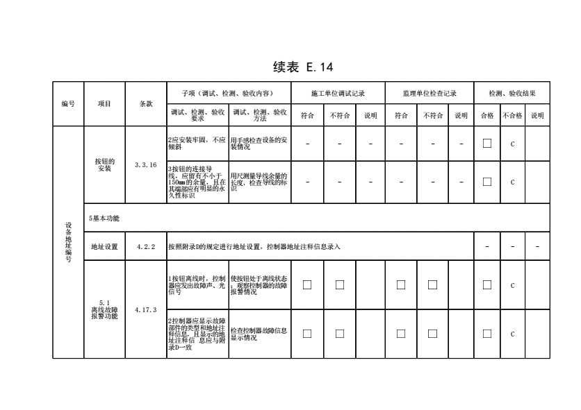 表格名称:表E.14 消火栓系统调试、检测、验收记录(续表7)