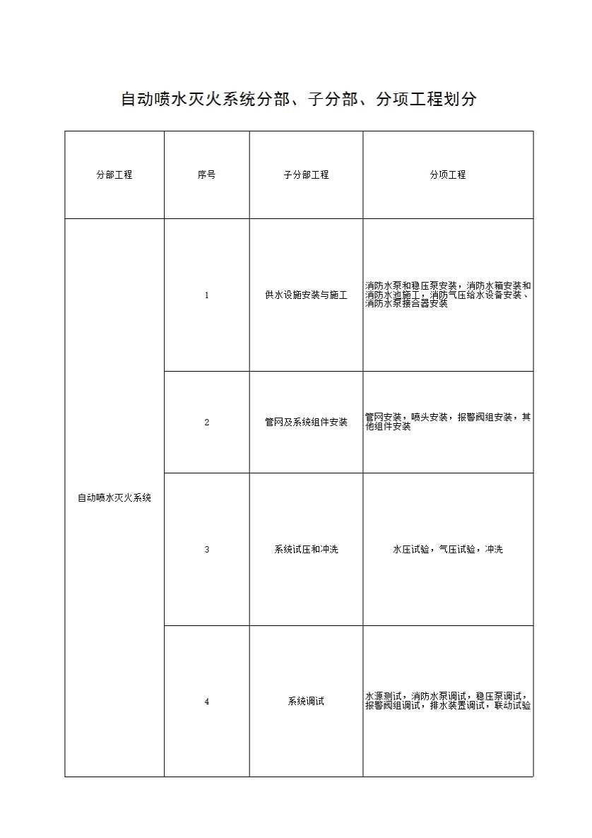 表格名称:1 分部、子分部、分项工程划分