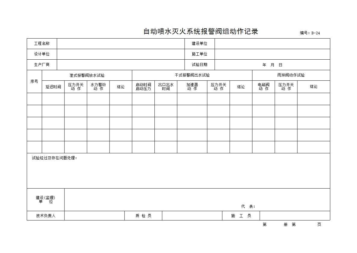 表格名称:自动喷水灭火系统报警阀组动作记录