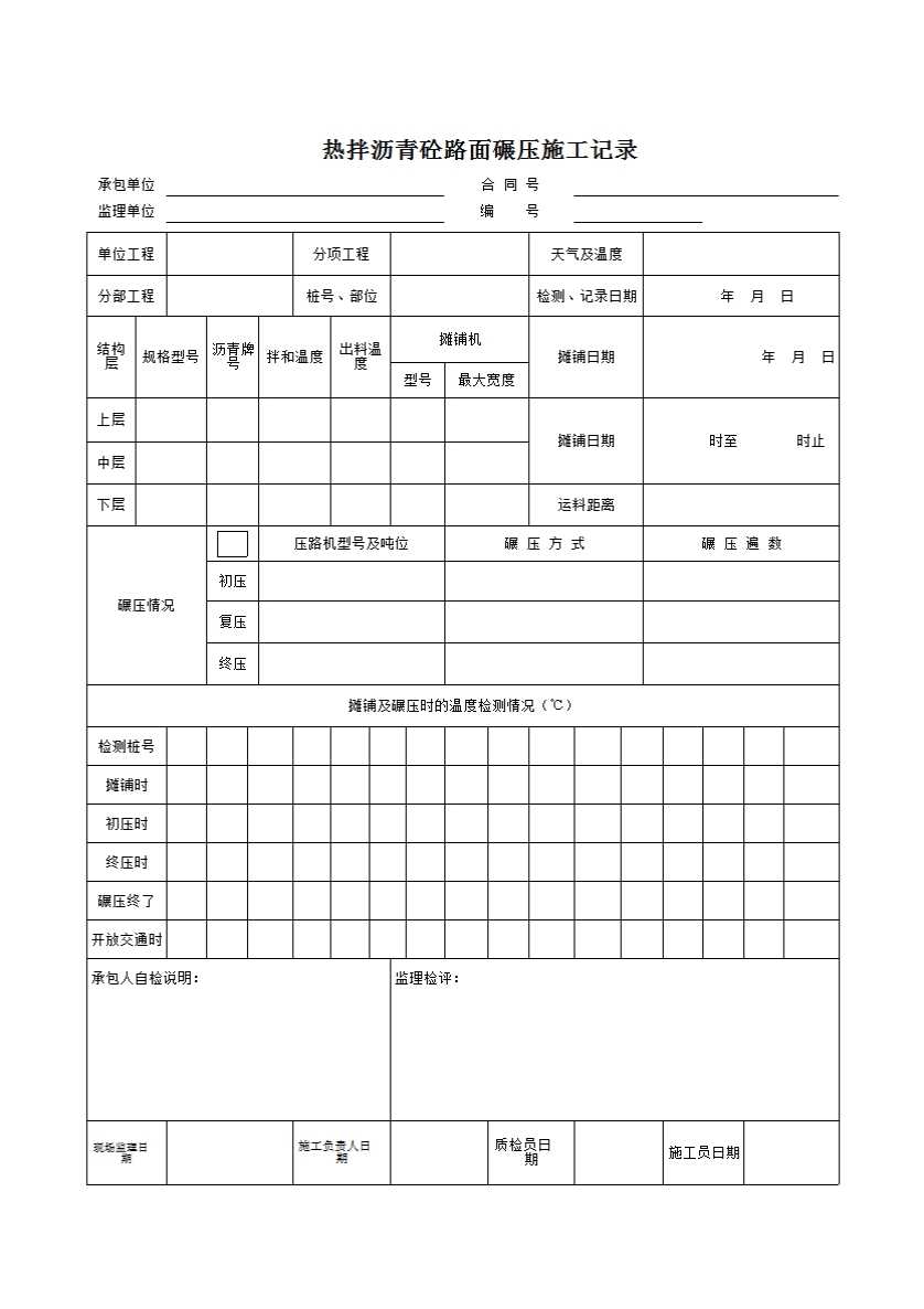 表格名称:JS507热拌沥青砼路面碾压施工记录