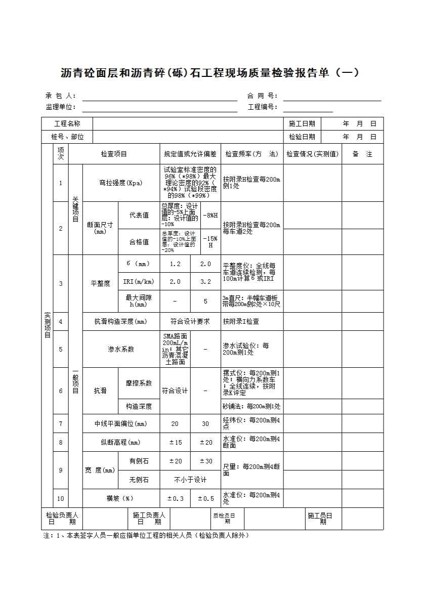 表格名称:ZJ702-1沥青砼面层和沥青碎(砾)石工程现场质量检验报告单(一)