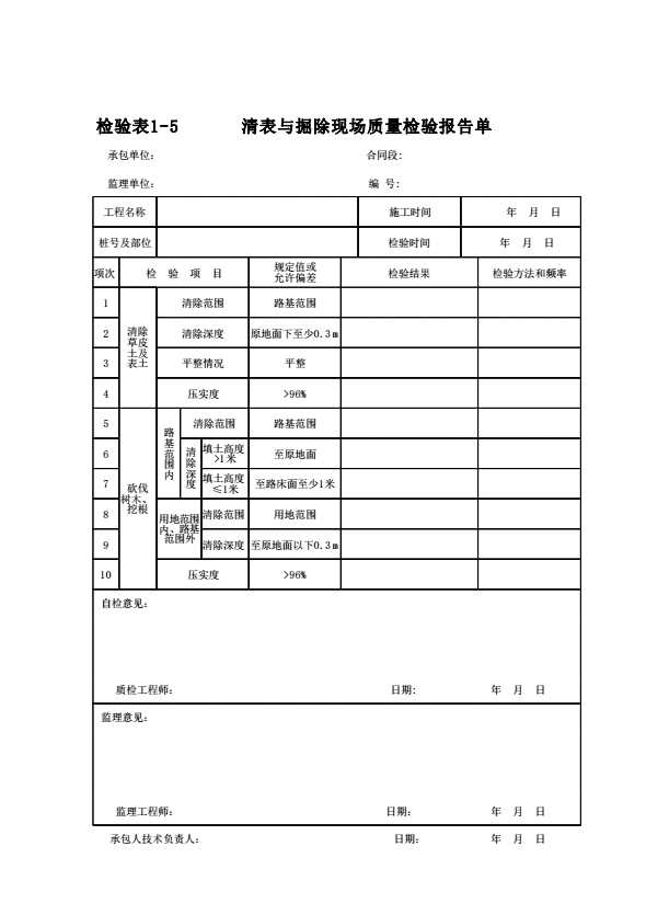 表格名称:检验表1-5 清表与掘除现场质量检验报告单