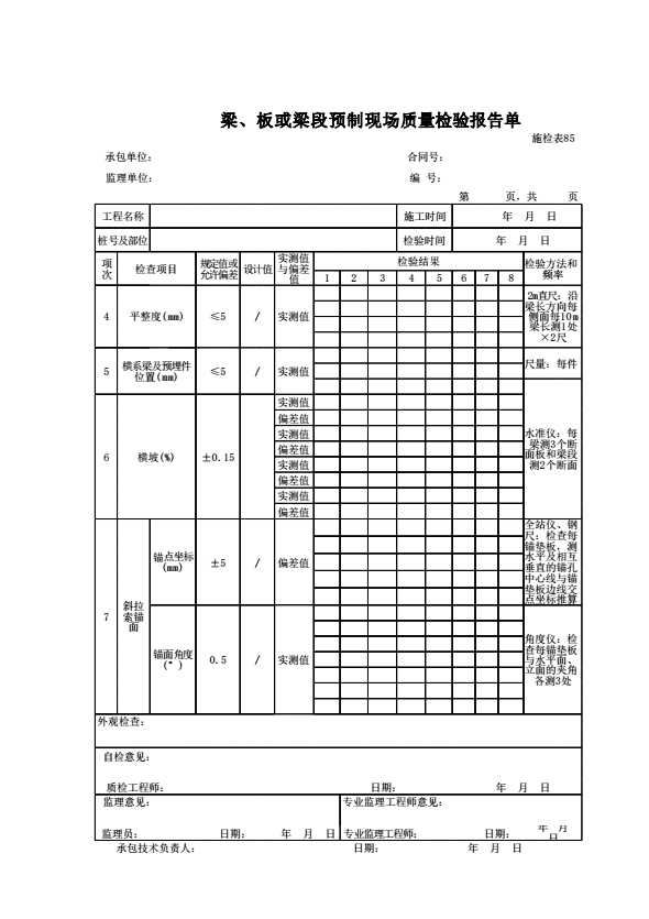 施检表85 梁、板或梁段预制现场质量检验报告单 续表