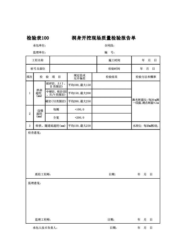 表格名称:施检表181 洞身开挖现场质量检验报告单