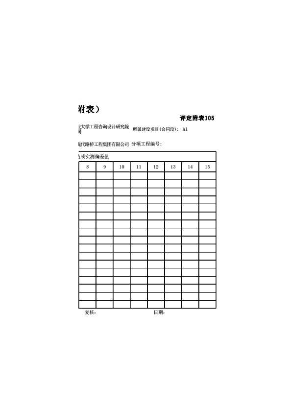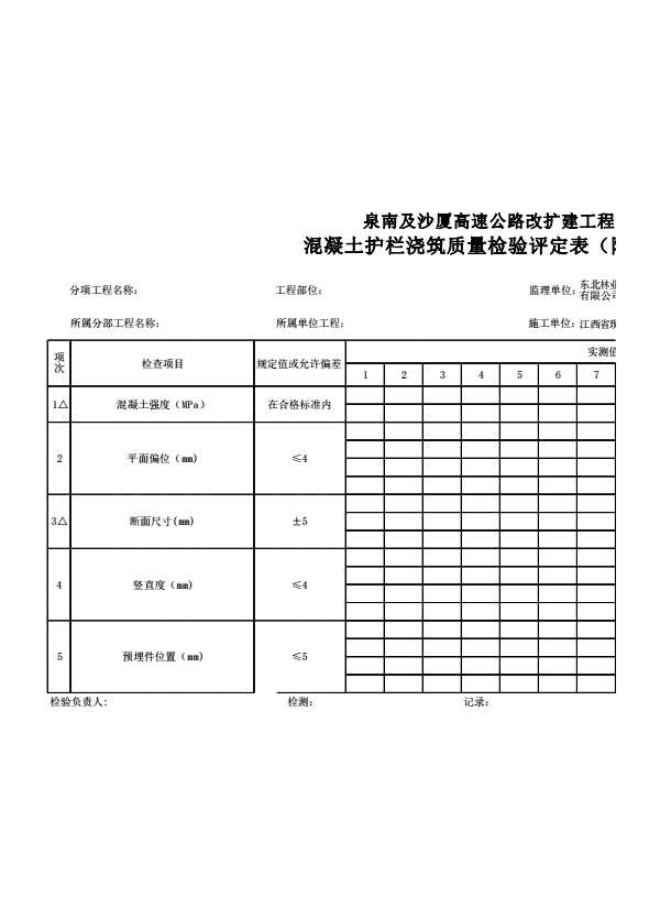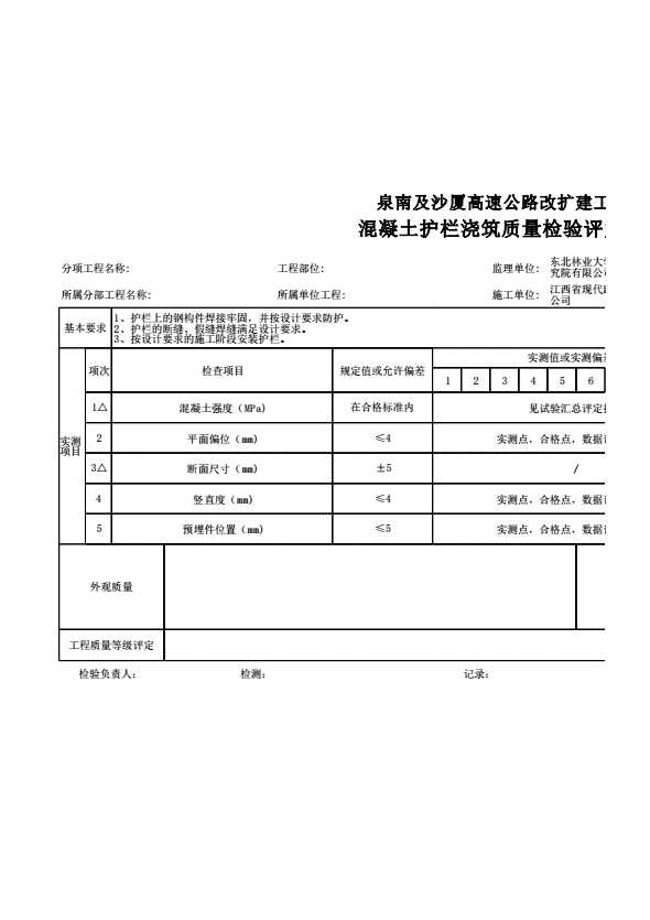 表格名称:评定表105 混凝土护栏浇筑质量检验评定表