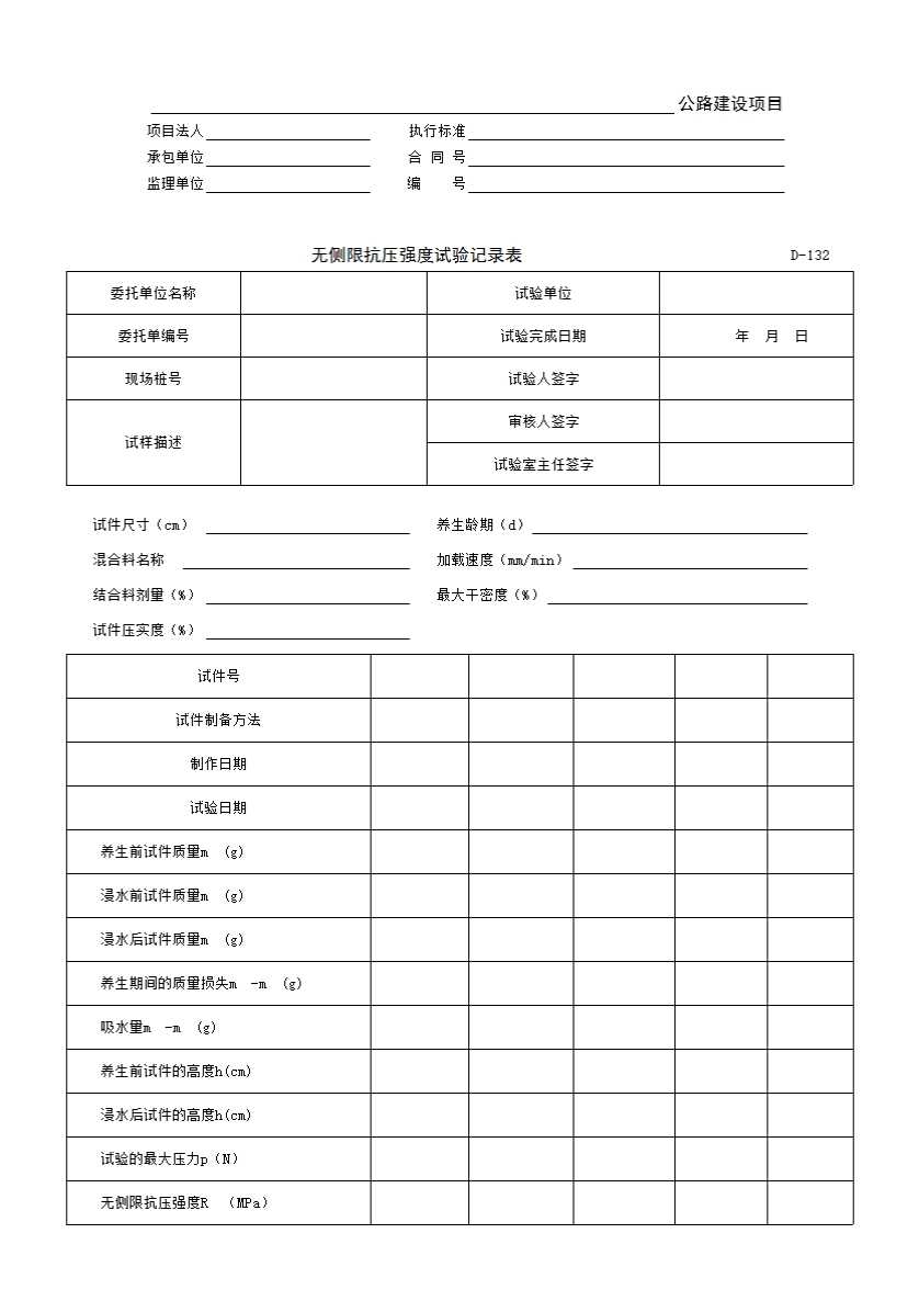 公路工程无机结合料稳定材料试验规程用表(JTJ057-94)