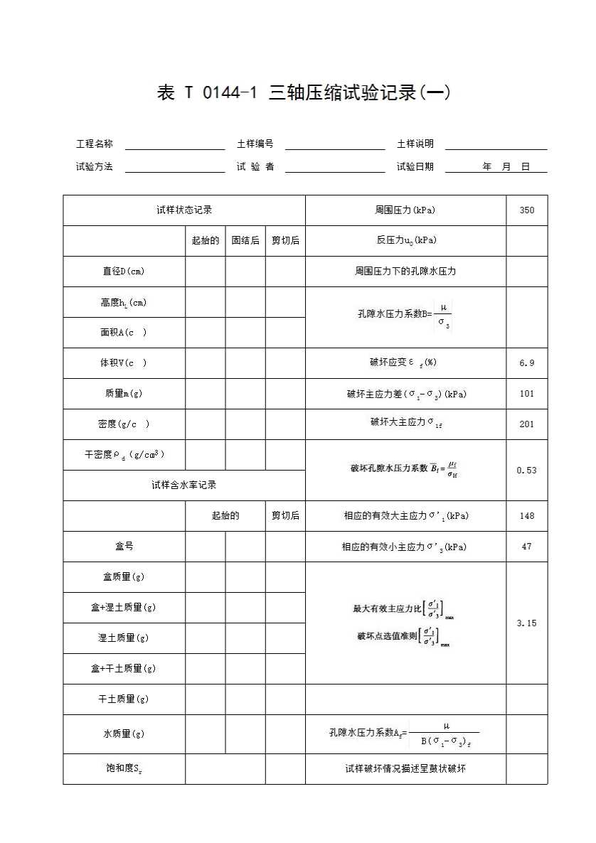 表格名称:表T0144-1 三轴压缩试验记录(一)