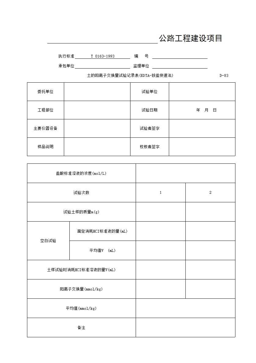 表格名称:D-83 土的阳离子交换量试验记录表(EDTA-铵盐快速法)