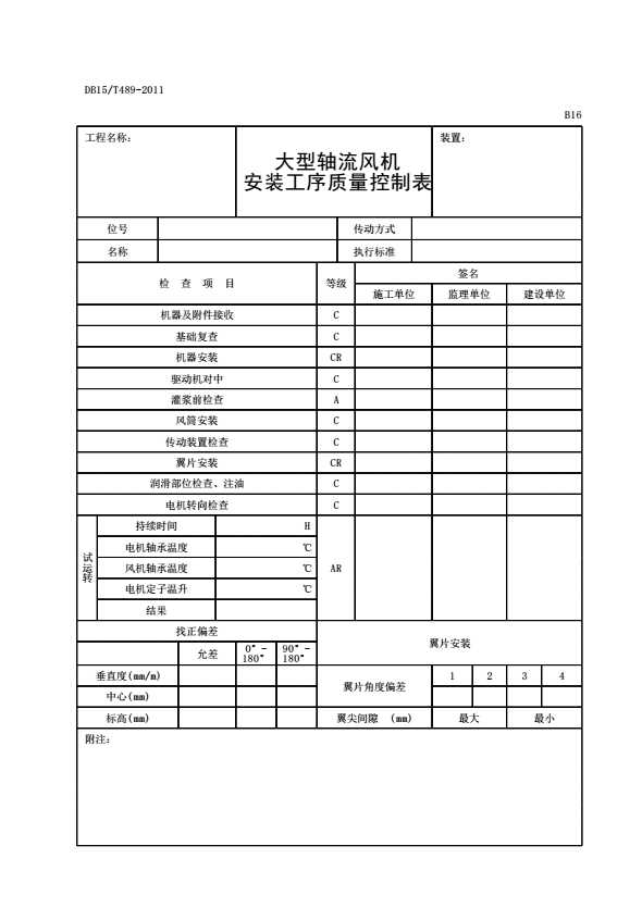 表格名称:B16 大型轴流风机安装工序质量控制表