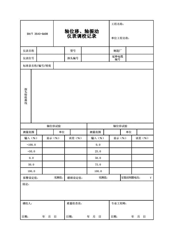 表格名称:SH/T 3543-G608 轴位移、轴振动仪表调校记录