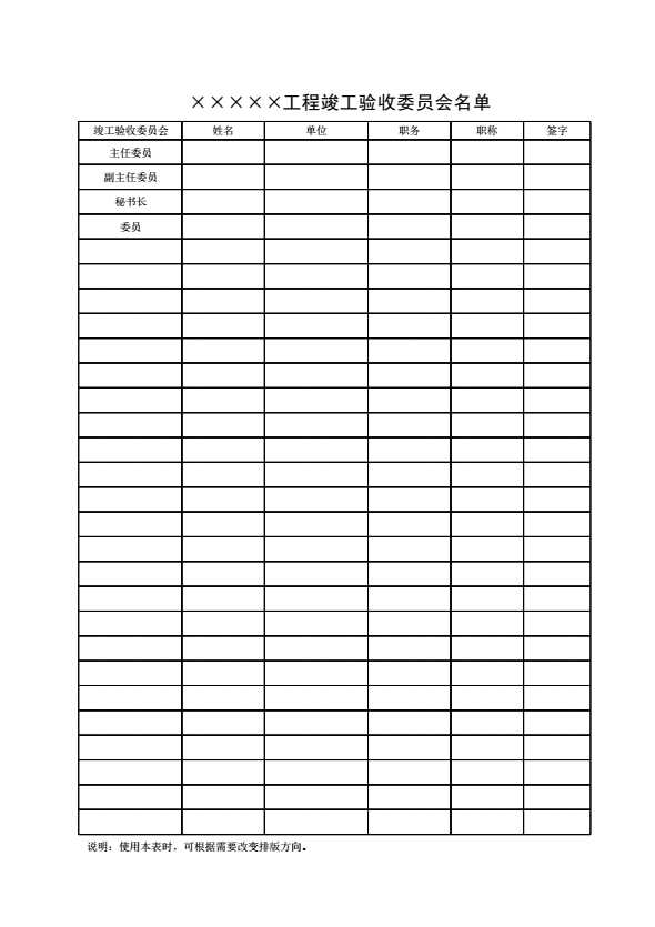 表格名称:竣工验收鉴定书