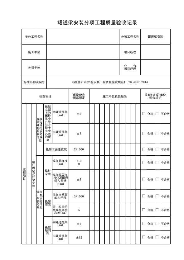 YB 4407-2014 冶金矿山井巷安装工程质里验收规范