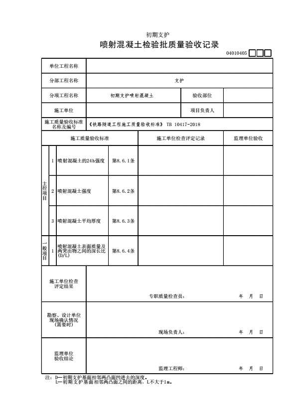 表格名称:04010405 【初期支护】喷射混凝土检验批质量验收记录