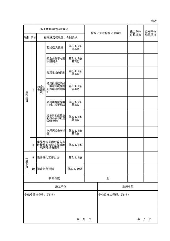表格名称:08070203 箱盒安装及配线检验批质量验收记录表