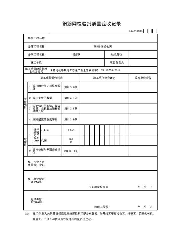 表格名称:G04030206 钢筋网检验批质量验收记录