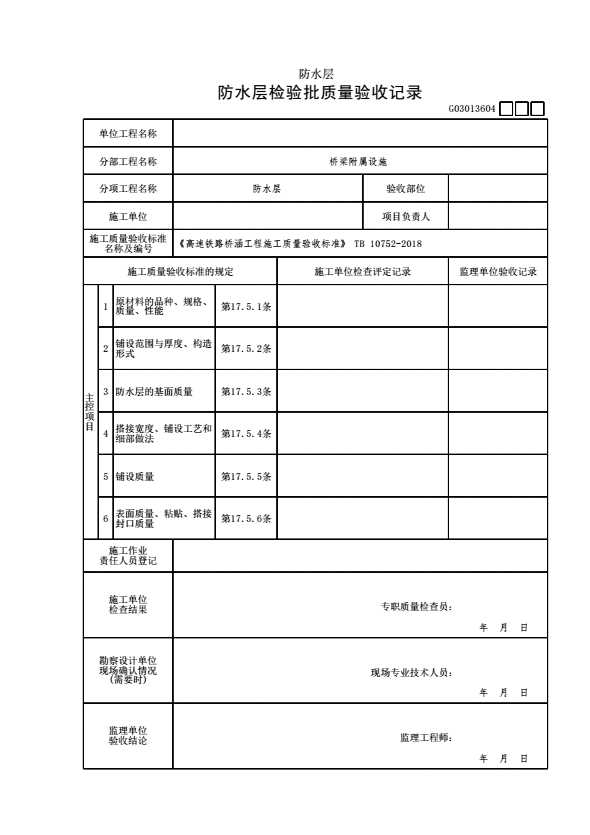表格名称:G03013604 【防水层】防水层检验批质量验收记录
