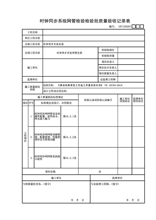 表格名称:G07120203 时钟同步系统网管检验检验批质量验收记录表