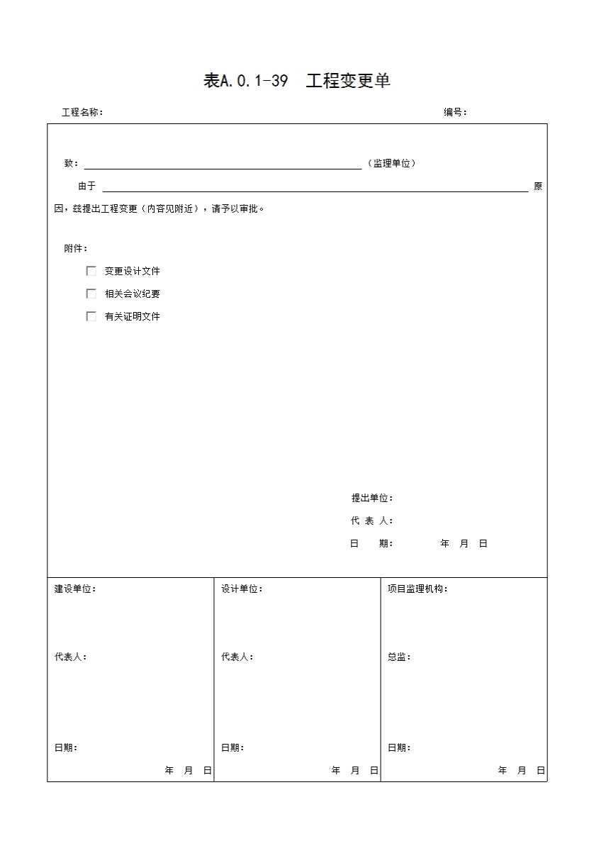 表格名称:表A.0.1-39 工程变更单