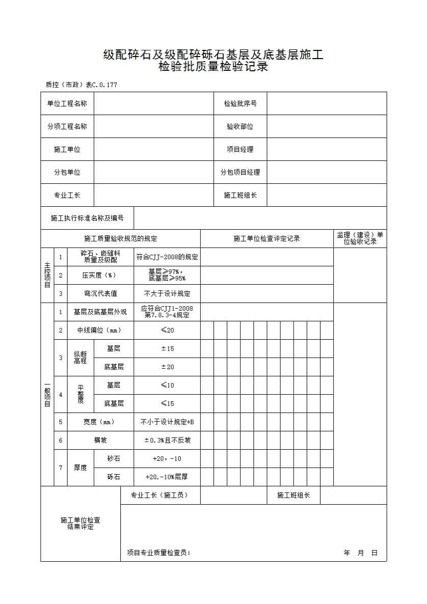 表格名称:级配碎石及级配碎砾石基层及底基层施工