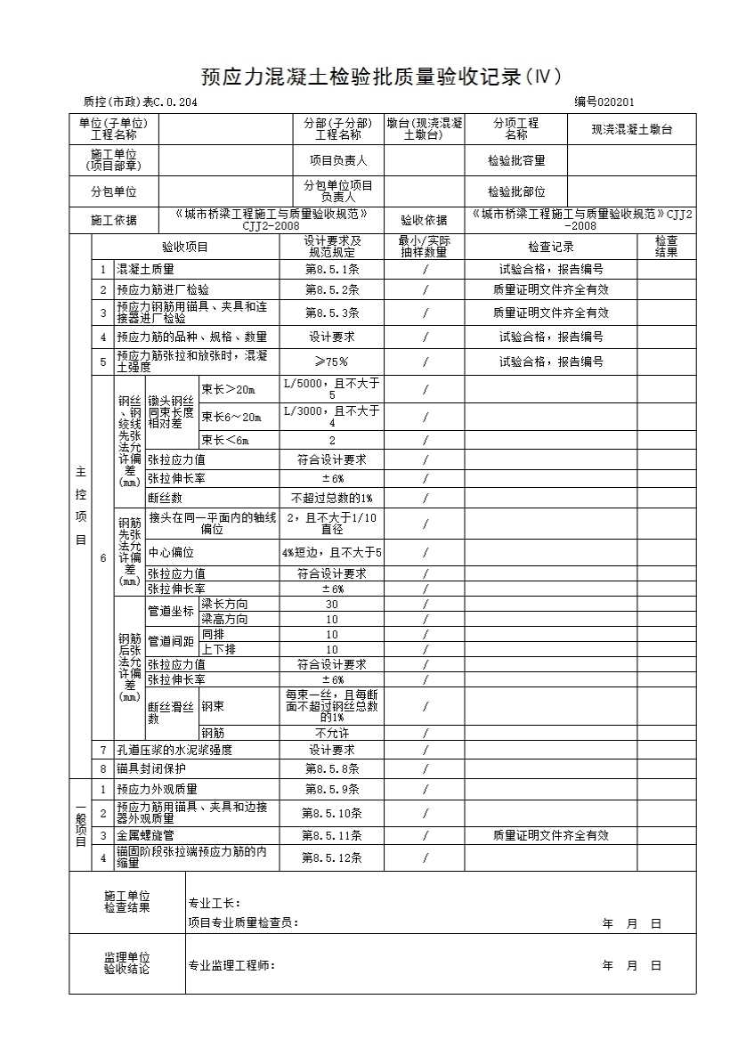 预应力混凝土检验批质量验收记录(Ⅳ)