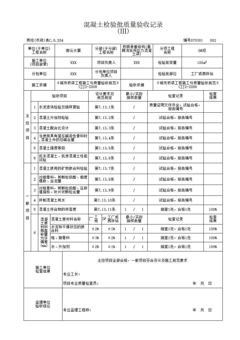 检验数量:同强度等级、同性能混凝土的配合比设计应各检查1次。