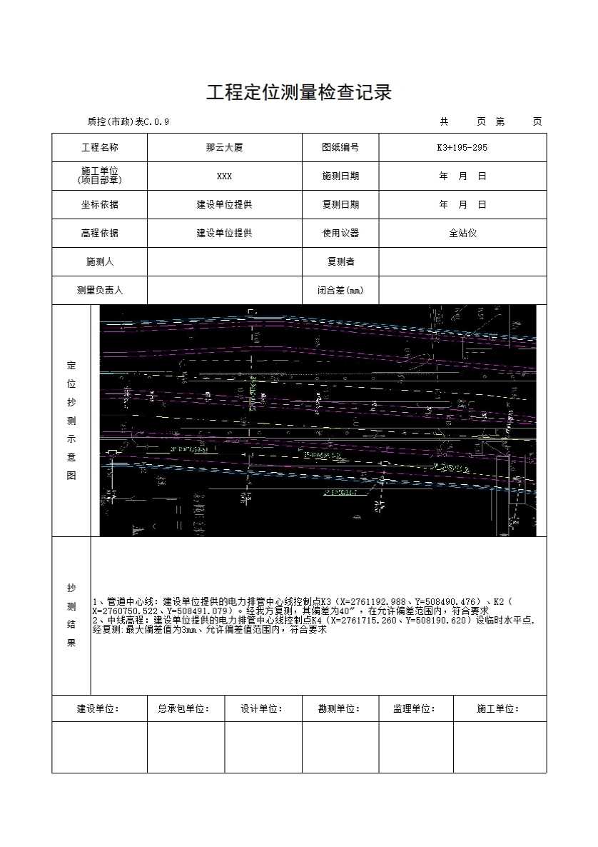 表 C.0.9 工程定位测量检查记录