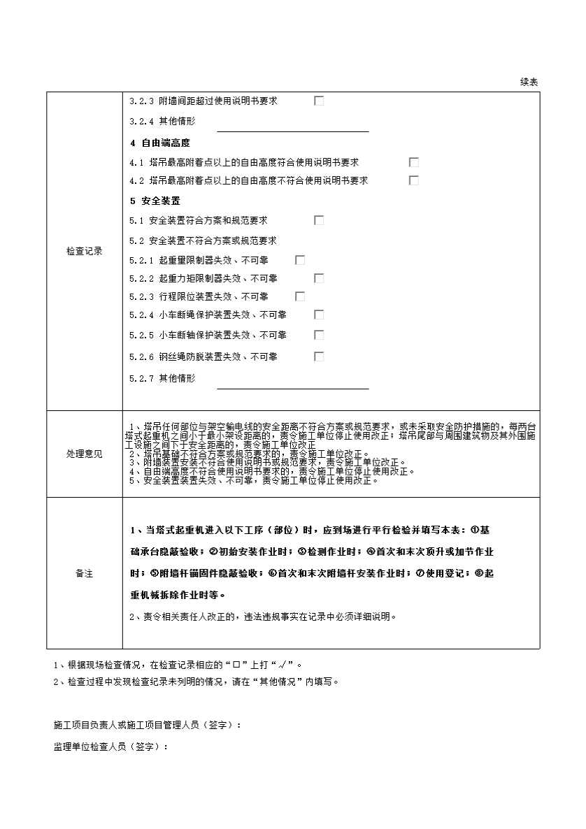 危险性较大的分部分项工程安全监理平行检验工作用表