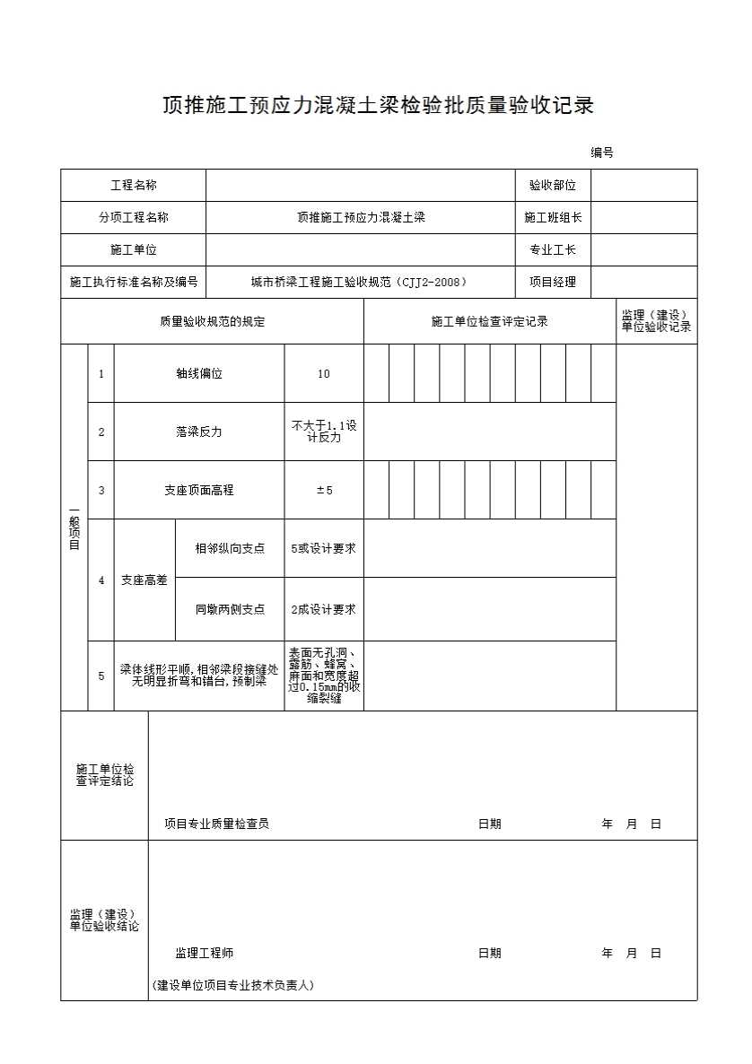 表格名称:1 顶推施工预应力混凝土梁检验批质量验收记录