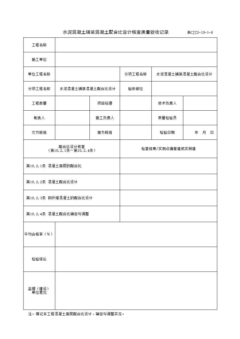 表CJJ2-10-1-8 水泥混凝土铺装混凝土配合比设计核查质量验收记录