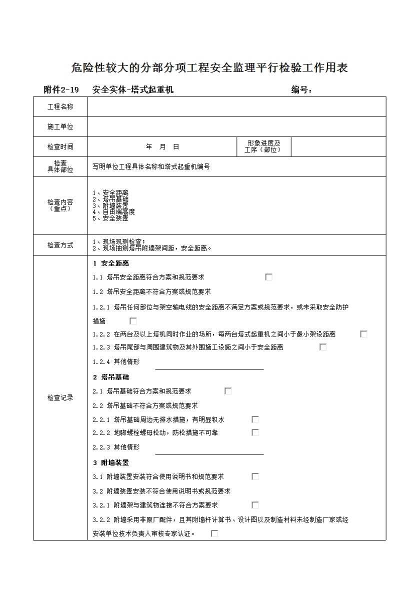 危险性较大的分部分项工程安全监理平行检验工作用表