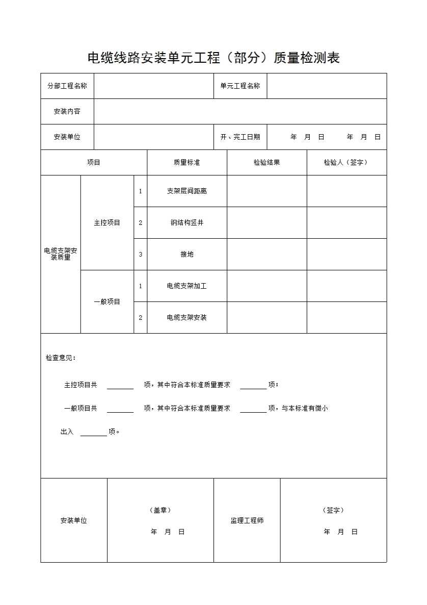 表格名称:电缆线路安装单元工程(部分)质量检测表1