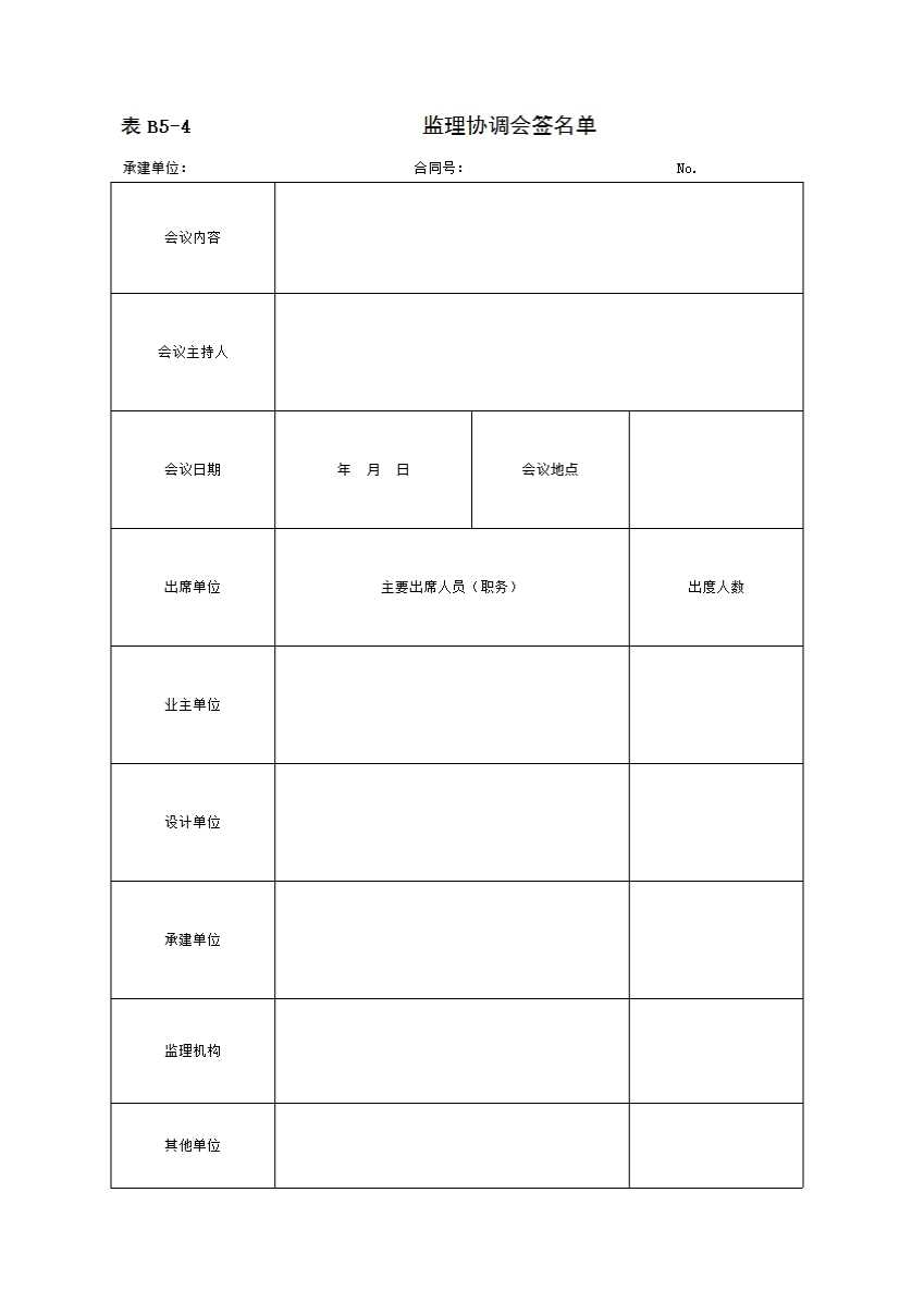 B5-4 监理协调会签名单