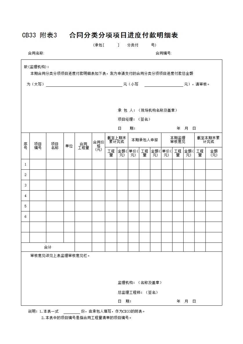 表格名称:CB33附表3 合同分类分项项目进度付款明细表