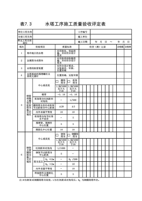 7.3 水塔工序施工质量验收评定表