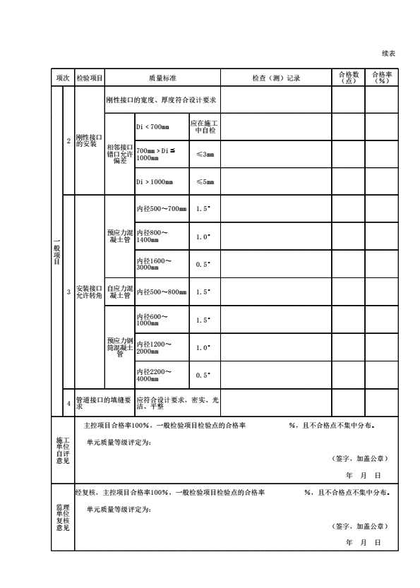 表7.6 混凝土管安装单元工程施工质量验收评定表