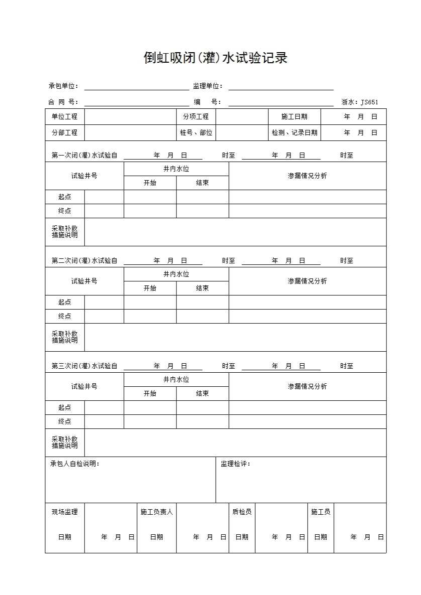 表格名称:051 倒虹吸闭(灌)水试验记录