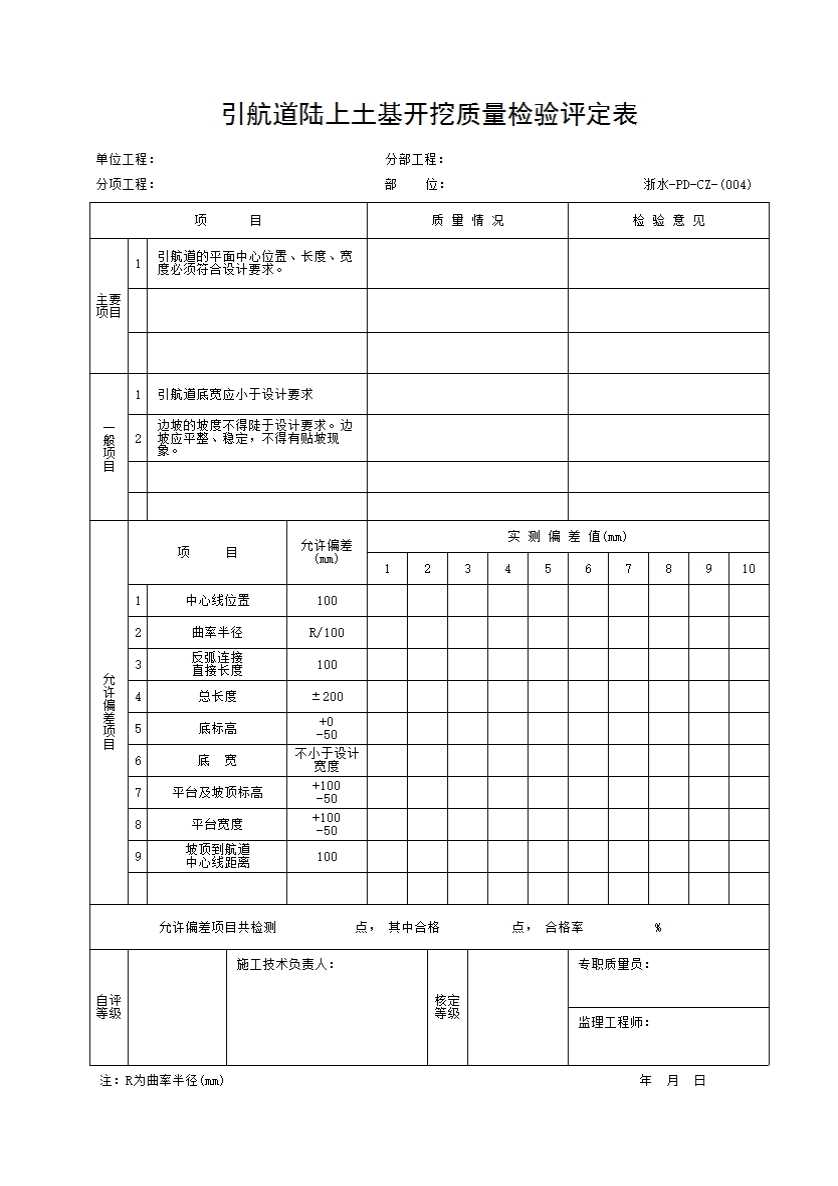 表格名称:004 引航道陆上土基开挖质量检验评定表