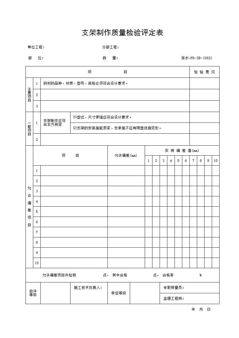 表格名称:082 支架制作质量检验评定表
