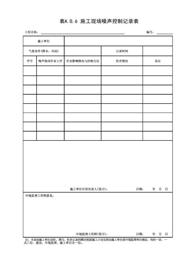 表格名称:表A.0.6 施工现场噪声控制记录表
