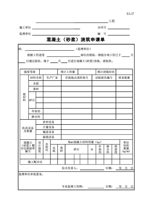 D.1.17 混凝土(砂浆)浇筑申请单