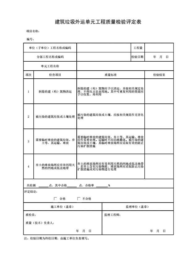 建筑垃圾外运单元工程质量检验评定表