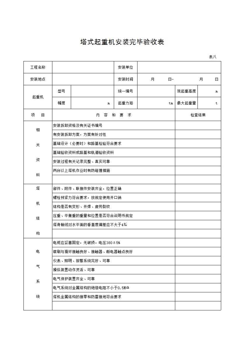 塔式起重机安装完毕验收表